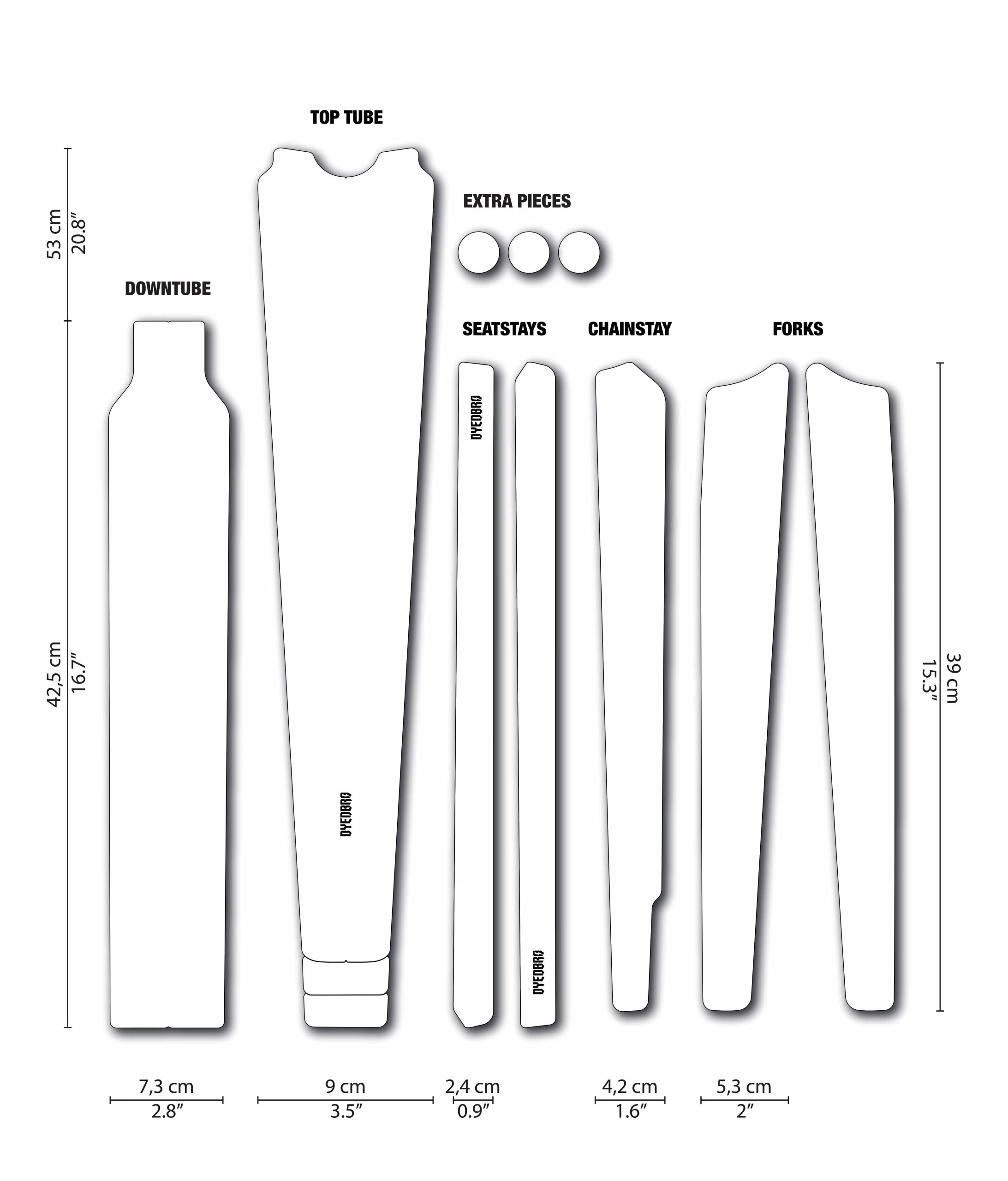 - Conçu pour protéger le tube supérieur, le tube diagonal, la fourche, les haubans et les bases avec un total de 12 pièces