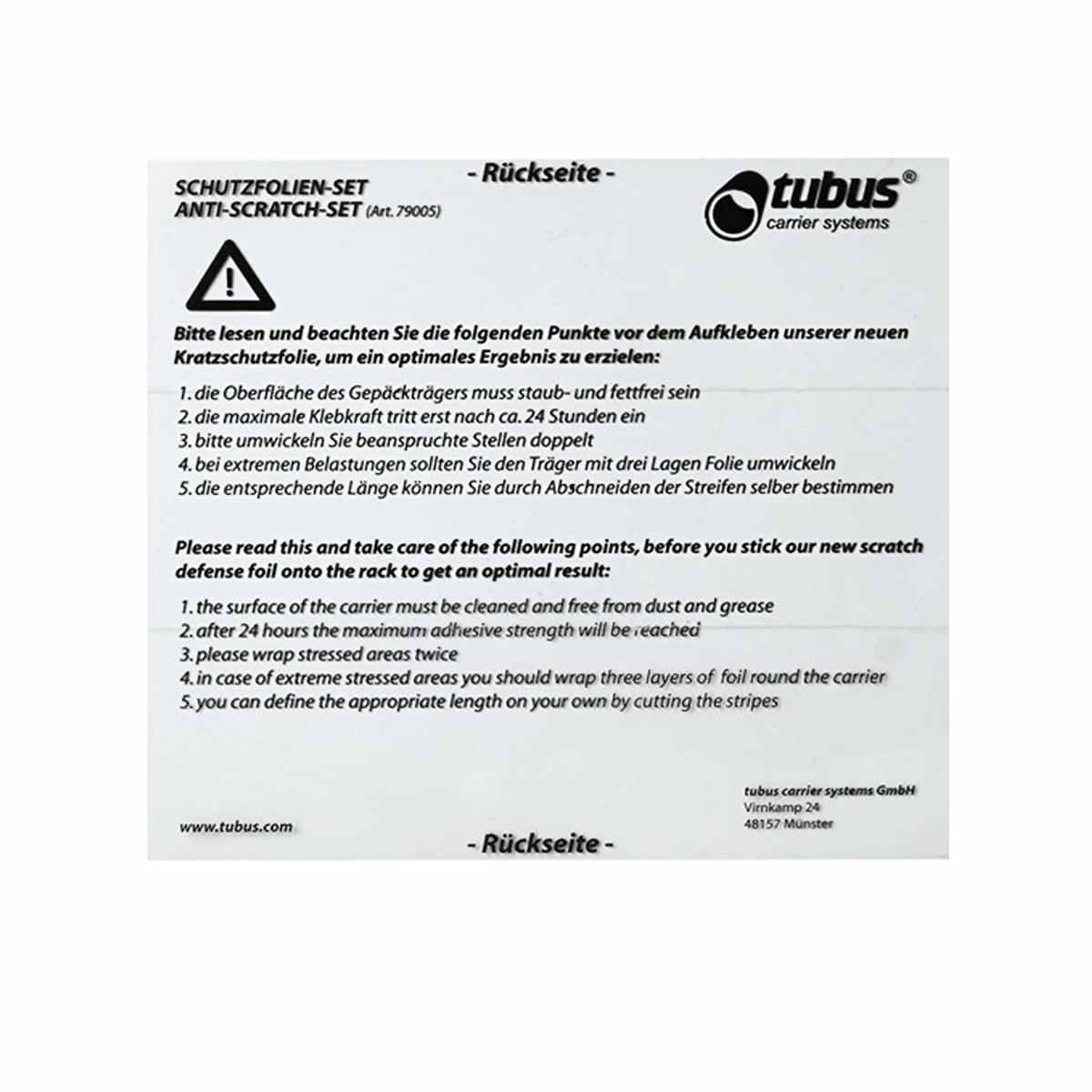 Le jeu de feuilles de protection Racktime protège votre rack Racktime ou Tubus de l’abrasion causĂ©e par les crochets de sac sur les racks enduits.